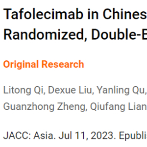 [2] Jian-Jun Li. (2023). Tafolecimab, a Novel Member of PCSK9 Monoclonal Antibodies, Is Worth Expecting in a Chinese Population. JACC: Asia, DOI: 10.1016/j.jacasi.2023.06.002