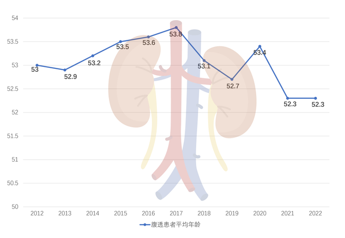 腹膜透析患者的透析龄维持稳定区间。截止2022年底,腹透患者平均年龄为52.3岁。