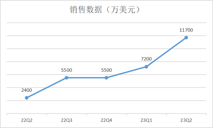 Carvykti自上市至2023年第一季度,其销售数据是持续缓慢的稳定增长。而2023年第二季度的销售数据突然窜高——相较于2023年第一季度(销售额为7200万美元),第二季度的销售额上涨约62.5%。Carvykti在2023年上半年的销售业绩已经超过2022年的总销售额。