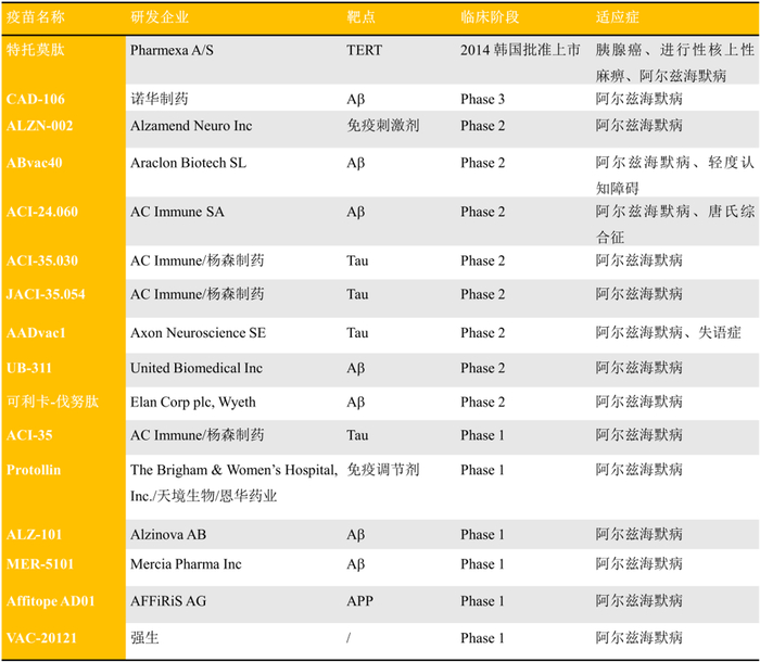 表1. 部分临床在研的AD疫苗