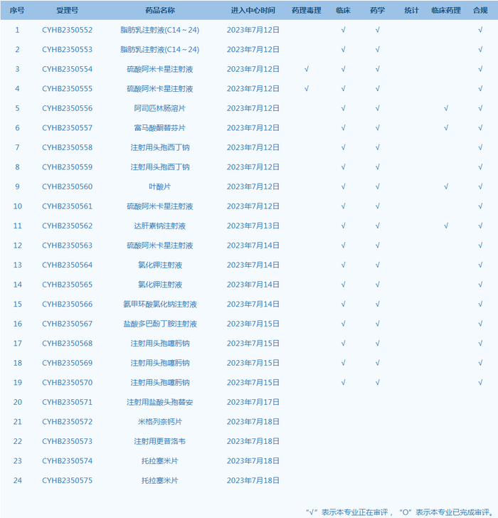 国家药监局药品审评中心网站公示24个仿制药一致性评价任务,涉及脂肪乳注射液(C14~24)等药品(截至7月18日)。
