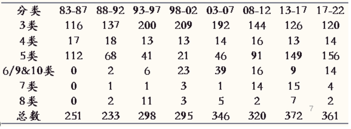5类有明显的先降后升的趋势,近年来上升趋势非常明显,峰值在2018年和2022年,均为39个;