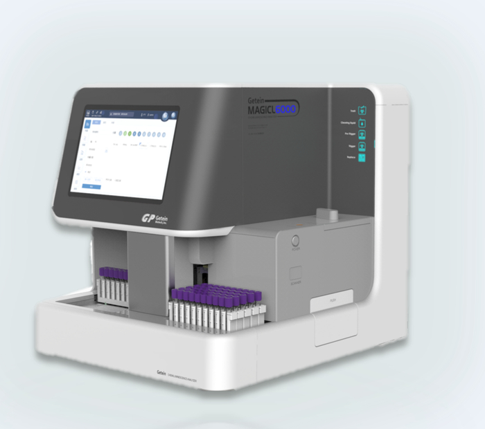由基蛋生物科技股份有限公司自主研发的MAGICL6000全自动化学发光测定仪可支持全血,血清,血浆,尿液、末梢血等多样本类型,50个样本位随到随放,具有HCT模块,精准还原全血含量,保证全血检测精度。检测肝纤五项时能真正做到自动化,精准定量检测,测试速度快,出报告时间短,检测结果可与国外知名厂家的结果相媲美,是临床肝纤维化诊断的好帮手。