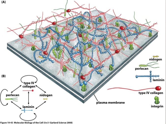 层粘连蛋白(LN)、Ⅳ型胶原(CIV)是基底膜的组成成分,基底膜是细胞外基质的特化结构、位于内皮细胞的基底面以及血管内皮细胞的内表面,包绕肌肉与脂肪组织。