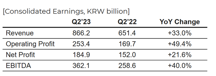 7月26日,三星生物制剂(KRX: 207940.KS)公布2023年第二季度财报,根据财报显示,第二季度的综合收入为8662亿韩元(48.4亿人民币),同比增长33%,综合营业利润为2534亿韩元(14.16亿人民币),同比增长49.4%。2023上半年度营收突破 15871亿 韩元(88.69亿人民币),同比增长56.4%,再创历史新高。