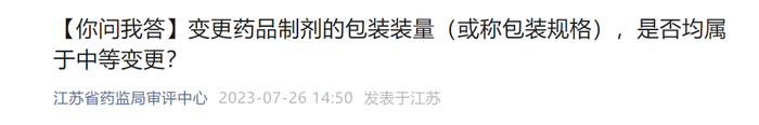 Q:变更药品制剂的包装装量(或称包装规格),是否均属于中等变更?