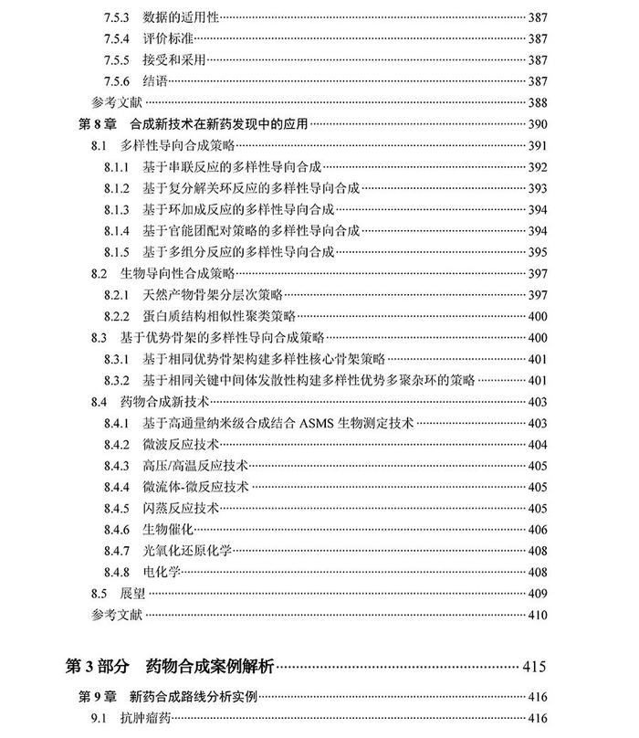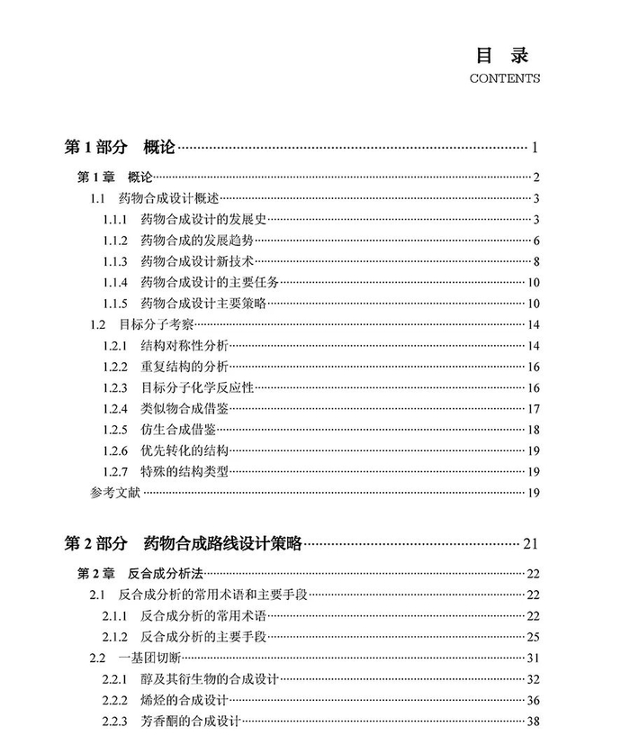 第 1 部分概要介绍了药物合成技术的发展历程、主要任务和策略、新技术和未来发展趋势,重点对目标分子考察进行了分析。