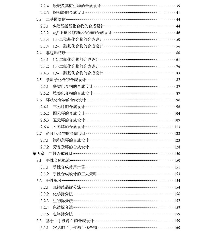 药物合成设计策略:反合成分析策略、正向合成分析策略、手性合成设计策略、选择性控制策略、合成路线的评价和选择、后期官能团化策略、计算机辅助合成路线设计策略、仿生合成设计、组合化学设计策略、多样性导向合成策略等等。