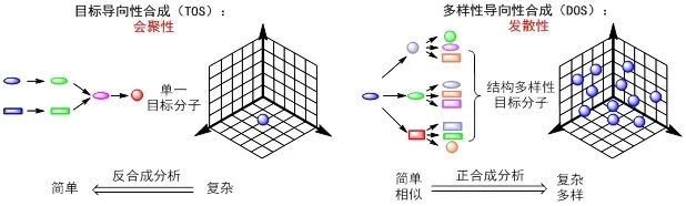 目标导向合成策略与多样性导向合成策略:多样性导向合成策略主要目的是建立一个含有分子结构复杂性和多样性的化合物库。