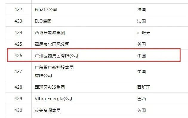广药集团2023年世界500强排名 第426位