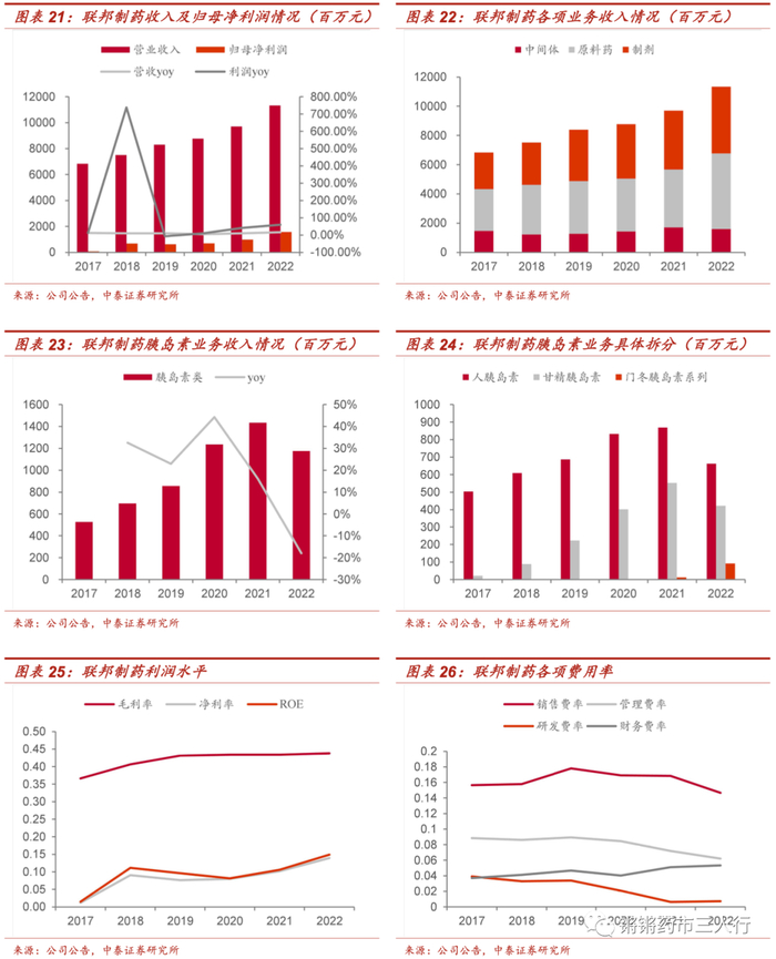 ■ 胰岛素业务22年集采下滑,23年有望恢复正轨。2017-2021年胰岛素业务由5.25亿元增长至11.76亿元,CAGR 29%。22年因胰岛素中标集采实行新的价格体系,收入下滑较多,23年通过销售快速增长从而弥补价格下滑,有望实现收入稳健增长。