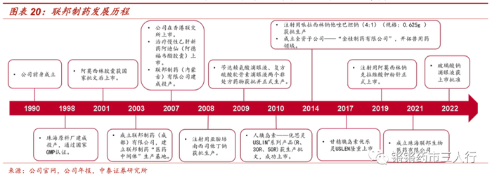 ■联邦制药于1990年在香港成立,2007年在香港联交所主板上市。公司最早以生产口服半合成青霉素制剂和可待因类止咳露起家,现已发展为集医药中间体、原料药、化学和生物制剂的研发、生产、经营为一体的综合性制药企业。公司较早向生物制药领域转型布局,重组人胰岛素和甘精胰岛素产品分别于2011年和2017年在国内获批上市。