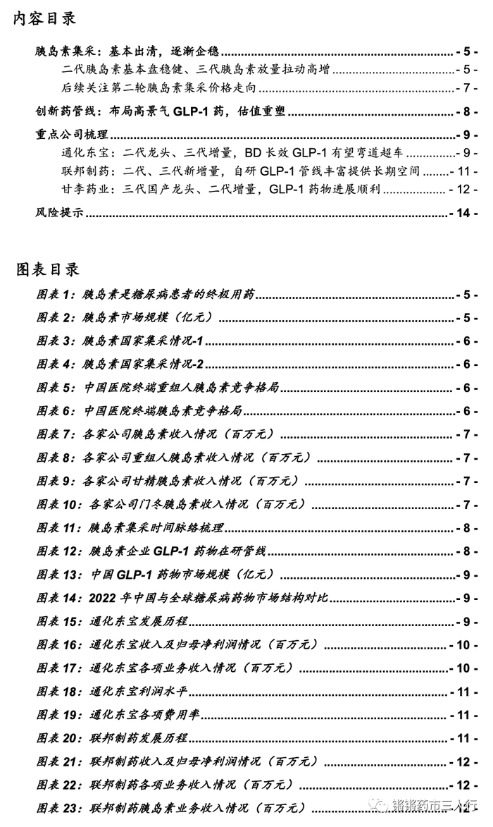 ■风险提示:二代胰岛素竞争加剧的风险;新产品获批不及预期的风险;药品招标降价的风险;研报使用信息更新不及时的风险。