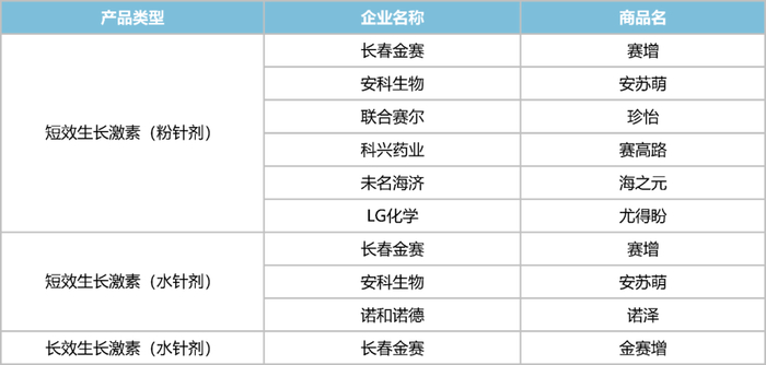 目前国内市场在售的生长激素类型有三种,分别为短效生长激素(粉针剂)、短效生长激素(水针剂)、以及长效生长激素(水针剂)。
