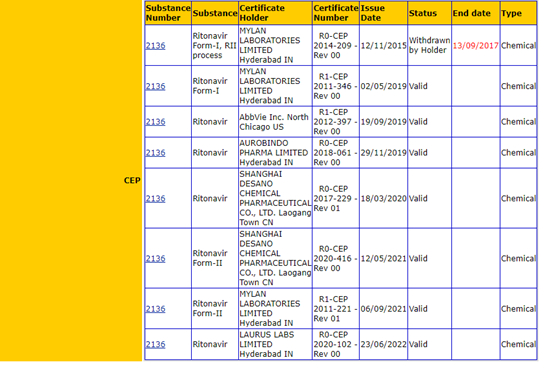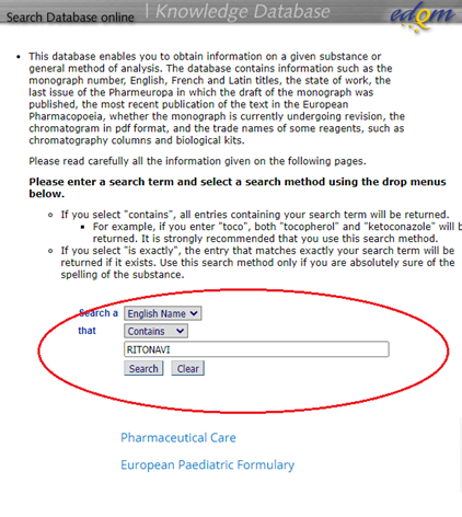 第二步,输入要查询的药品名称,同样以RITONAVI为例