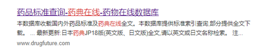 第一步,在任何一个搜索引擎上搜“药典在线”(也可以输入网址https://www.drugfuture.com/standard/)点击“药品标准查询-药典在线-药物在线数据库