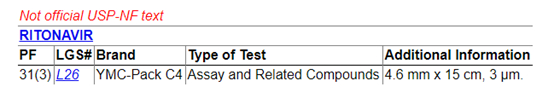 我们可以看到各个检测项下使用的色谱柱品牌和厂家,USP Column会把该产品相关的原料药以及制剂专论项下检测的所有项目的色谱柱都在此列出。