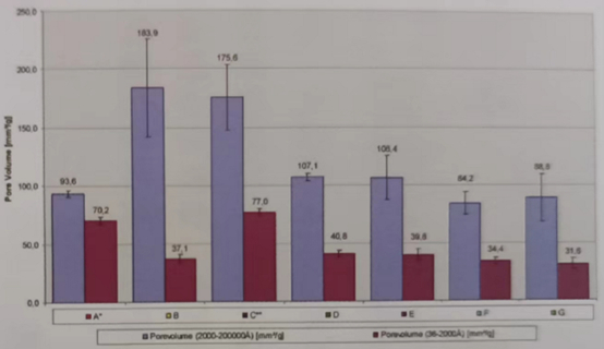 5.2不同晶型(β、δ)对难溶性药物的溶出度也有不同的影响。在湿法制粒过程中,δ晶型会发生自动转晶,称为β晶型,并伴随有微观结构的改变和表面积的大幅增加。而转晶作用对难溶性药物具有助溶作用。下图7是药物B与不同晶型的甘露醇的造粒过程,图8是造粒β和δ晶型干露醇的BET表面积和孔隙体积,图9是造粒β和δ晶型干露醇制成的药物B片的吸水与时间的关系,图10是药物B不同制粒过成压制的片剂的溶出度。