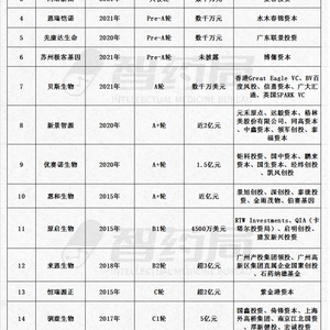 在所披露的融资金额方面,超亿元有6家企业,其他均为千万级别融资。其中,新景智源和优赛诺生物为新锐公司,皆成立于2020年底,完成新一轮超亿元融资。最高披露金额来自驯鹿生物5亿元C轮融资。