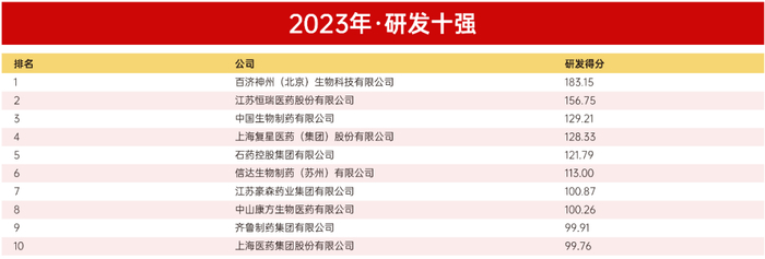 百济神州是一家全球性生物科技公司,专注于为全球癌症患者发现和开发创新抗肿瘤药物,提高药物可及性和可负担性,凭借其通过强大的自主研发能力和外部战略合作,百济神州在“2023年·研发十强”中排名第一。
