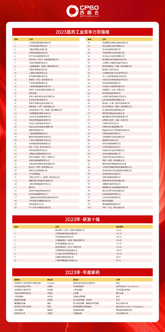 2023医药工业竞争力百强榜发布,恒瑞、阿斯利康、中国生物位列三甲