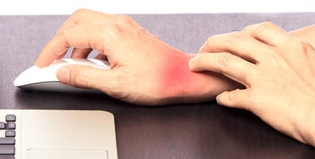 在办公时,用鼠标、键盘的动作属于对手指的高频操作,长此以往,手部局部肌腱反复摩擦、按压患处时,会产生压痛感,并且可能会摸到硬结。硬结就是腱鞘增厚的部分。
