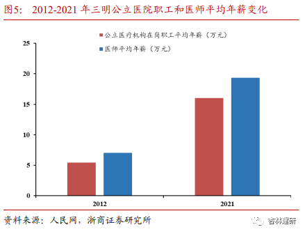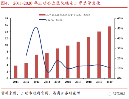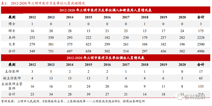 ①医生的流失率怎么样?三明医改并没有导致明显的人才流失。相反,通过改革, 医务人员薪酬收入大幅提高,提升了招聘效率。我们认为,薪酬及考核机制对于医生的工作选择和积极性确实有较强的作用,但同时对于年轻医生,成长体系、培养路径、临床经验的快速积累;成熟医生收入阳光化、更好的课题资源支持及工作环境同样重要。当然我们同时认识到三明市是山区城市,当地存在医生水平在全国竞争力有限,本地薪酬收入分化较小,民营与公立医院薪酬差距不明显的情况。我们认为三明的薪酬体制改革经验在全国全面推广或仍需要因地制宜。