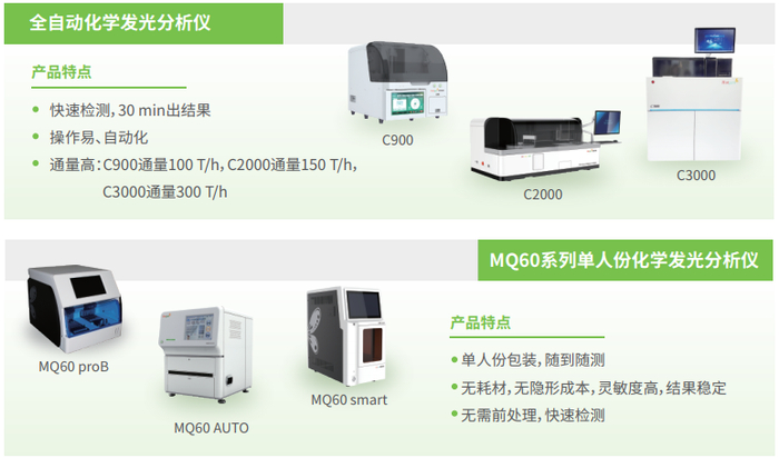 除了能检测TNF-α,热景生物化学发光11项细胞因子(IL-1β、IL-2、IL-2R、IL-4、IL-5、IL-6、IL-8、IL-10、IL-17A、TNF-α、IFN-γ),依托于MQ60系列(MQ60 smart、MQ60 proB、MQ60 AUTO)和C900/C2000/C3000全自动化学发光检测平台,快速出结果,不仅能够满足急诊、ICU对床旁快速检测的需求,同时项目齐全,能够全方面监控不同类型的细胞因子,对患者不同的临床状态做更加全面有效的判断。