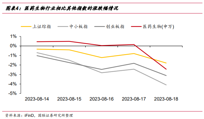 本周医药表现弱于大盘: