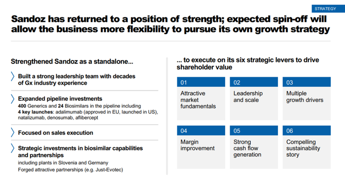 诺华制药将重点放在利润更丰厚的创新药物上。目前Sandoz(山德士)是诺华制药旗下的仿制药和生物类似药部门(the Generics and Biosimilars business of Novartis)。最早在2022年8月公开正式宣布分拆计划。