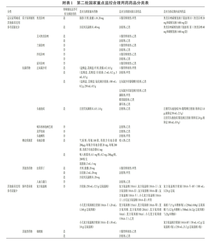 限制使用级的重点监控品种为,有明确的临床使用适应证、未列入《国家基本药物目录》或《国家基本医疗保险药品目录》或国家谈判药品,各医疗机构可实施定期进行处方(医嘱)专项审核和点评、专项检测评估。