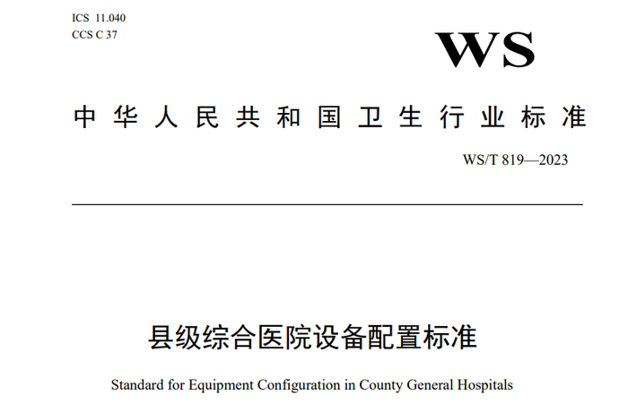 8月9日,国家卫生健康委官网发布了一项推荐性卫生行业标准,即WS/T819—2023《县级综合医院设备配置标准》。该标准旨在规范县级综合医院设备配置,并规定了万元及以上设备配置的基本原则。根据医院规模的不同,标准还提供了设备配置的品目和数量。