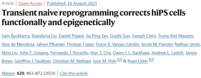 1. Sam Buckberry et al. Transient naive reprogramming corrects hiPS cells functionally and epigenetically. Nature, 2023, doi:10.1038/s41586-023-06424-7.