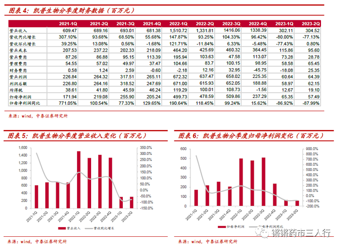 ■分季度看,公司2023年单二季度实现营业收入3.05亿元,同比下降77.13%;实现归母净利润0.57亿元,同比下降87.99%;实现扣非归母净利润0.42亿元,同比下降91.14%。公司单二季度业绩增速有所放缓,主要受到2022Q2同期应急公共卫生服务检测业务的高基数影响,公司常规业务仍然保持良好增长趋势,2023Q2常规分子诊断产品使用量达到357万人份,环比2023Q1 增速达42.69%。