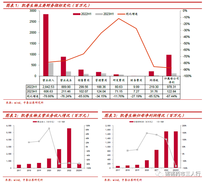■分业务看,2023年上半年医药工业实现营收159.95亿元(+11.64%),毛利率55.52%(+0.95pp)。汉斯状实现收入5.56亿元,汉曲优收入12.77亿元(+57.1%)、苏可欣收入4.78亿元(+32.7%),新品和次新品收入保持快速增长。其中,但复必泰(mRNA新冠疫苗)销量同比显著下降。医药工业的研发投入25.19亿元(+22.16%),占医药工业收入的15.75%。公司2023年上半年实现第三方医学实验室检验服务收入2.55亿元,同比下降88.43%;分子诊断产品实现收入3.51亿元,同比下降44.85%,其中自产产品实现销售收入3.16亿元,外购产品实现收入0.35亿元。公司2023年上半年实现第三方医学实验室检验服务收入2.55亿元,同比下降88.43%;分子诊断产品实现收入3.51亿元,同比下降44.85%,其中自产产品实现销售收入3.16亿元,外购产品实现收入0.35亿元。