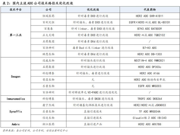 2.技术路线:主流是基于第一三共、Seagen、Immunomedics等平台优化改造