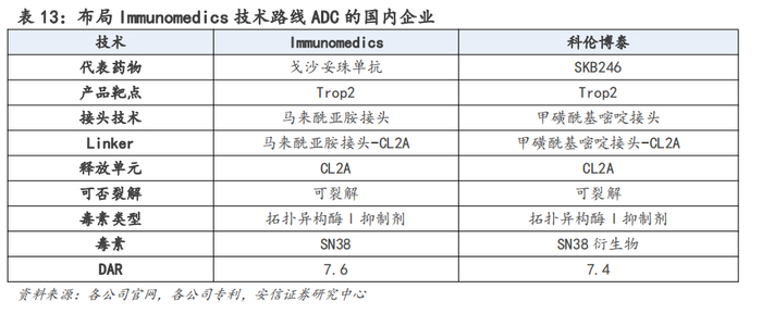 国内以Immunomedics ADC技术平台为基础进行优化改造的ADC企业,主要有科伦博泰等,其主要针对接头、毒素进行改造。
