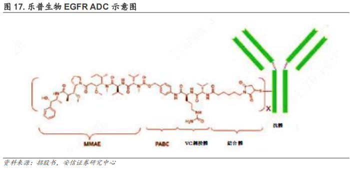 乐普生物的ADC技术主要来自收购企业美雅珂,其ADC技术也是沿用已过专利期的Seagen的ADC技术路线,整体结构也为“抗体-(Mc-VC-PABC-MMAE)n”结构,仅在抗体上有所不同,目前其基于“抗体-(Mc-VC-PABC-MMAE)n”结构的EGFR ADC、Claudin18.2 ADC均已进入临床开发阶段。