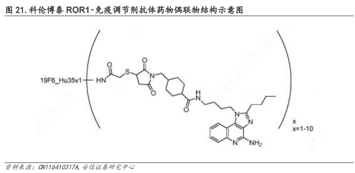 除外上述ADC平台外,根据已公开专利信息,科伦博泰还布局了ROR1‑免疫调节剂的抗体药物偶联物,其选择Toll‑Like Receptor激动剂作为payload,专利显示其ROR1‑免疫调节剂抗体药物偶联物具有良好的抗肿瘤效果。