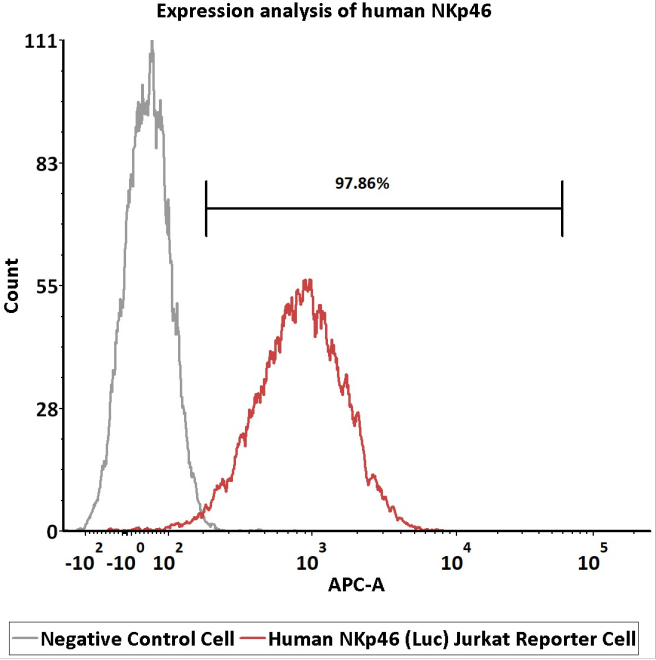 Expression analysis of human NKp46 on Human NKp46 (Luc) Jurkat Reporter Cell by FACS.