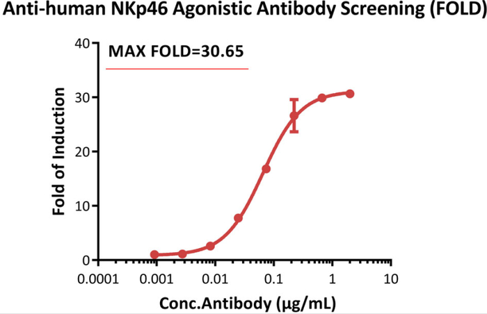 Thisreportercell was incubated with serial dilutions of anti-human NKp46 antibody. The max induction fold was approximately 30.65.