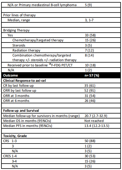 表1 患者Axi-cel输注前的特征和临床结局