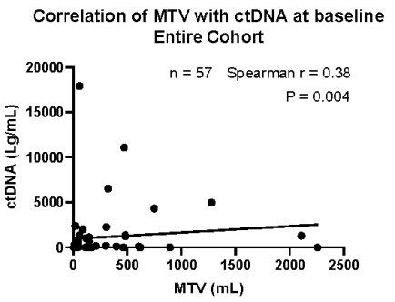 图1 完整队列中,基线MTV与ctDNA的相关性