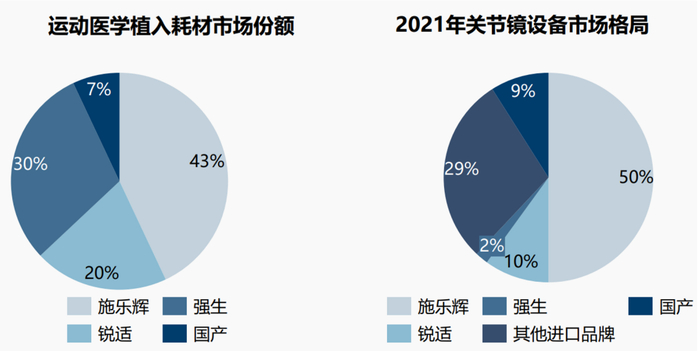 无论是关节镜设备还是其他运动医学耗材,目前均被施乐辉,强生,锐适为代表的外企占据垄断地位,国产产品的市场占有率还处于较低水平。