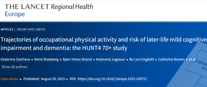 [1] Zotcheva, Ekaterina et al. Trajectories of occupational physical activity and risk of later-life mild cognitive impairment and dementia: the HUNT4 70+ study. The Lancet Regional Health–Europe, Volume 0, Issue 0, 100721
