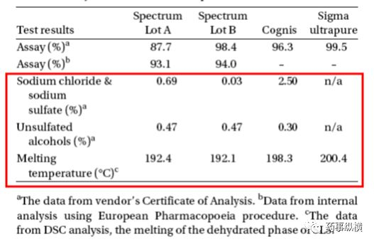 不难理解,与API一样,辅料的理化性质、机械性质的差异也是由其生产工艺决定的,不同的生产工艺(或参数)会生产出不同性质的辅料。如果辅料生产的起始物料、生产工艺(如全合成、半合成、发酵)、生产设备、生产规模、工艺参数等发生了变化,那么辅料中也就可能产生新的工艺杂质,也可能导致某些理化性质发生变化,甚至引起机械性质、粉体学性质的变化,例如不同pH、不同粒度等。