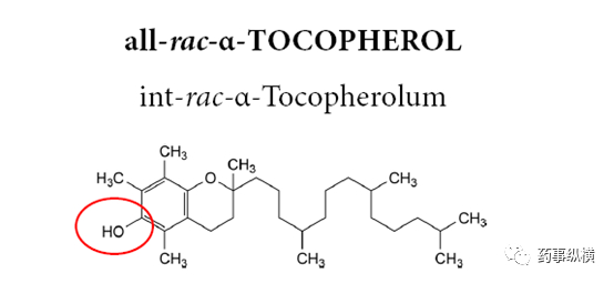 某药物的片芯辅料之一为all-rac-α-Tocopherol,中文名为α-生育酚,结构式中含有酚羟基,作为抗氧剂使用。但有时研发人员误将其认为是维生素E而使用了中国药典中的原料药维生素E作为抗氧剂使用,从结构式中可见由于药典中的维生素E为α-生育酚的醋酸酯,因此已没有抗氧化作用了。所以,使用辅料时应注意辅料的化学结构和其作用的关系。