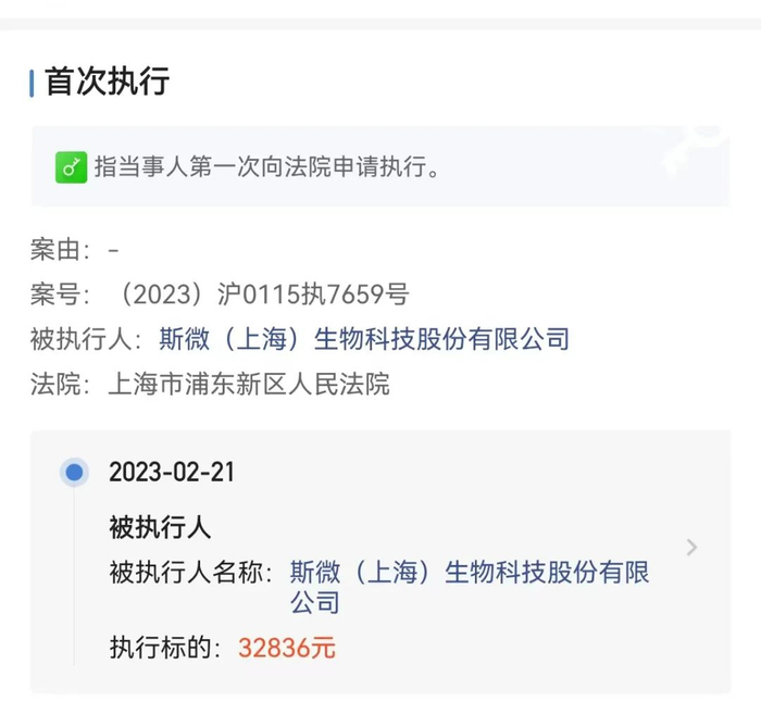 此次斯微生物涉及限制高消费,只是其诸多官司中的一个,工商信息显示,目前斯微生物作为被告的司法案件多达33个,其中最小的执行标的仅为32836元。