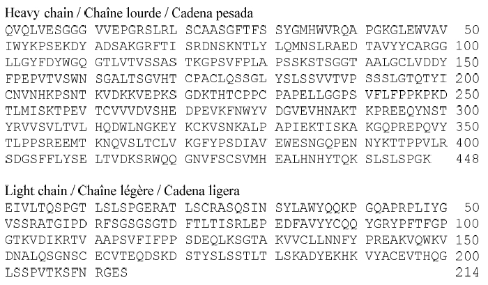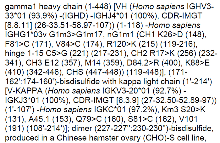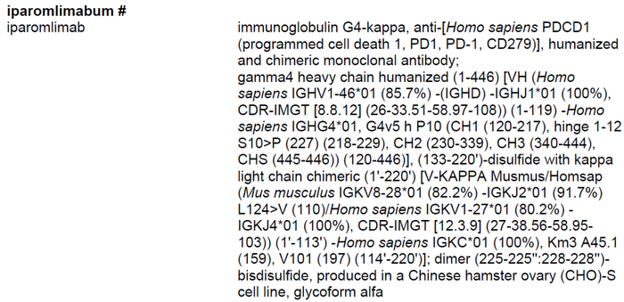 艾帕洛利单抗序列如下,采用IgG4亚型,引入S228P突变。