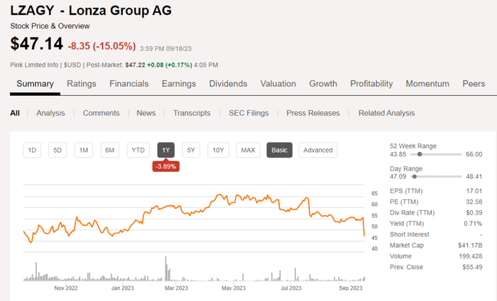 此前7月21日,LONZA发布了2023年上半年业绩。2023年H1公司收入31亿瑞士法郎,同比增长5.6%。公司业绩增长疲软可能与去年同期新冠收入高基数,今年早期阶段服务市场低迷,营养胶囊需求疲软导致产能利用率不足等有关。